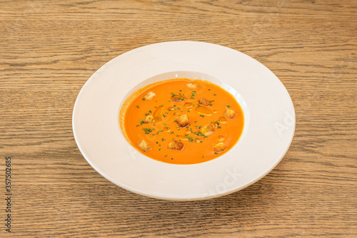 gazpacho, andalusian, spanish, spain, soup, food, bowl, vegetable, meal, lunch, dinner, cream, healthy, pumpkin, dish, plate, white, tomatoes, vegetarian, cookery, epicure, carrot, parsley, hot, delicious, cooked, orange, isolated