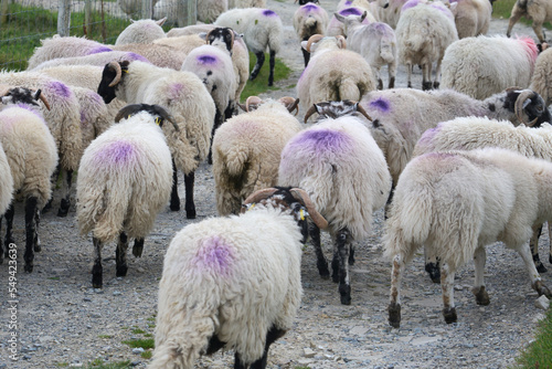 typically coloured sheep on a Pasture in Kerry county, Republik of Ireland