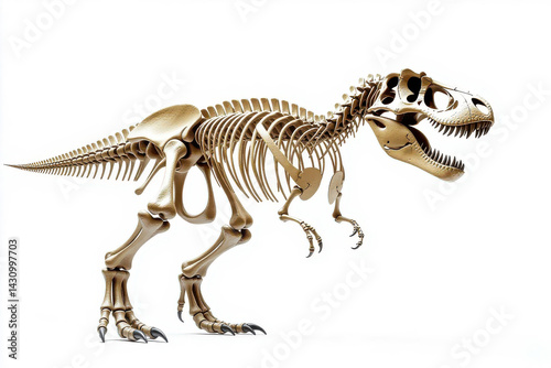 Tyrannosaurus Rex Skeleton Exhibit Isolated on White