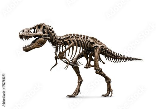 Tyrannosaurus skeleton fully grown on white background