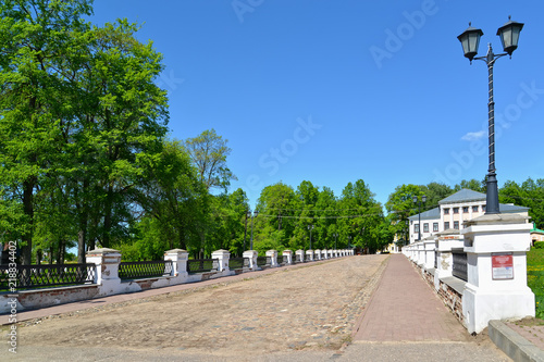 cathedral, bridge, protection, fenced, balustrade, architecture, stone, cobbled, road, old, view, sight, landscape, city, russia, russian, golden ring, regional, center, province, provincial, summer, solar, day, sky, blue, anybody, nobody