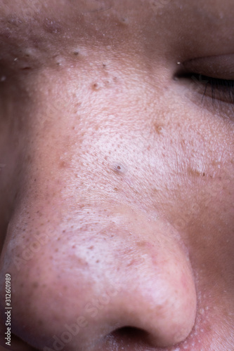 Ugly pimples blackheads on nose of teenager