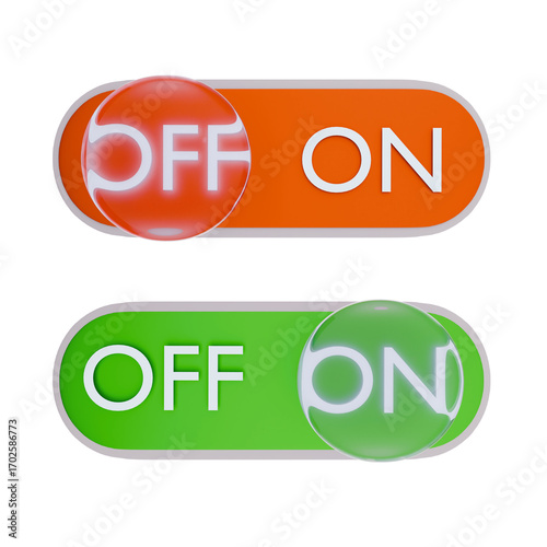 UI Toggle Switch Button – Glass Effect On Off Control, Mobile App and Web Interface