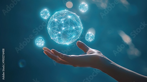ultra, realistic, hyper, detailed, high, resolution, palm, open, hand, facing, upwards, bright, skin, colours, holding, floating, network, this, circle, other, 7, circle, around, these, look, futuristic, blurry, blue, earth, globe, earth, planet, global, business, environment, concept, map, care, ball, ecology, protection, hand, sphere, communication, technology, environmental, hold, nature, green