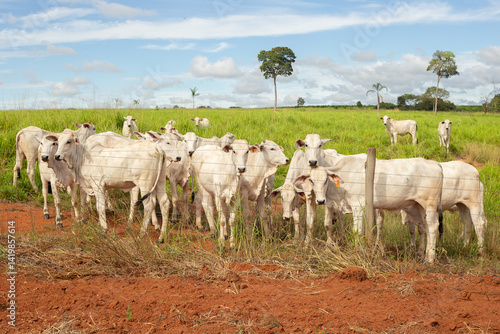 Um rebanho de gado nelore em pasto de uma fazenda no interior de Goias