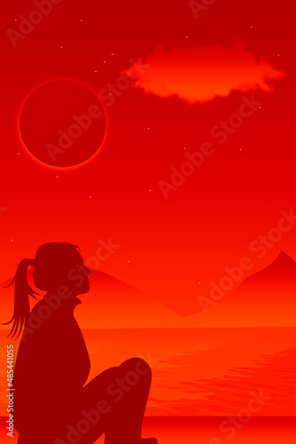 silhouette, couple, love, woman, illustration, people, evening, moon, heaven, vector, romance, art, beach, sun, valentine, romantic, ticker, sunset, kiss, children, star, man, blue, day, family