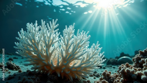 Underwater close-up of bleached coral affected by climate change and ocean warming