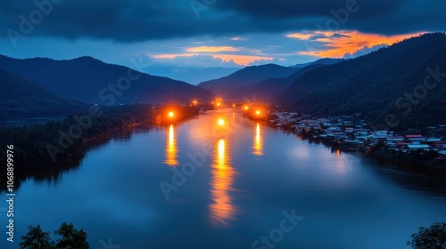 fireball, phenomena, river, dusk, water, landscape, nature, night, sky, cloud, illumination, light, serene, peaceful, mystical, sight, travel, adventure, tour tourism, culture, tradition, folklore