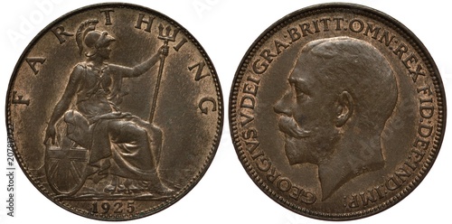 United Kingdom, British farthing 1925, seated Britannia with oval shield and trident, King George V head left, bronze,