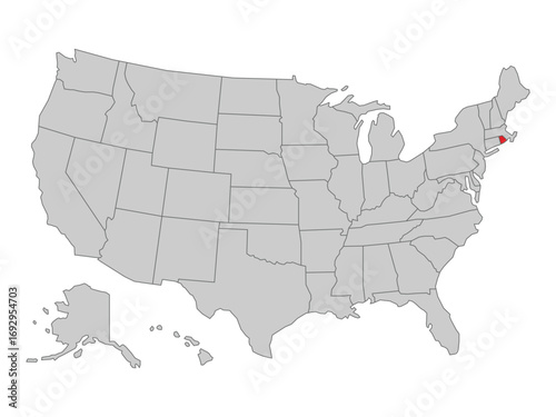 United States political map with Rhode Island state highlighted, vector illustration of US map with states