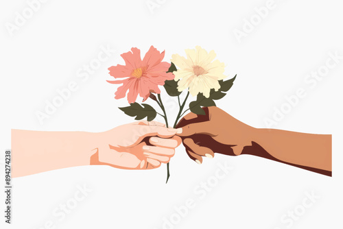 diverse, diversity, equality, flower, friendship, hand, holding, illustration, mutual, peace, respect, together, togetherness, oneness, vector