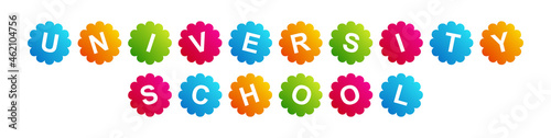 University School - text written on Beautiful Isolated Colourful Shapes with White background