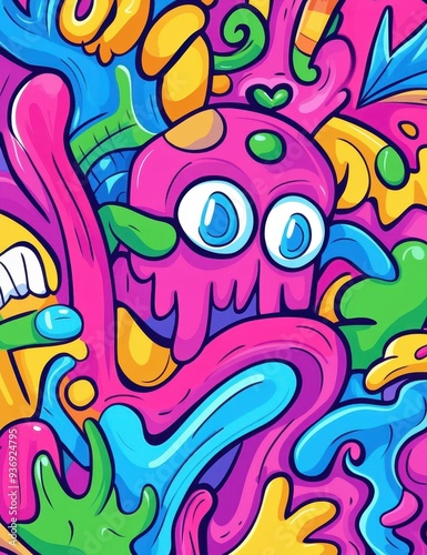 Unleash your creativity with this vibrant doodle art, radiating joy through its playful, colorful beams of light.
