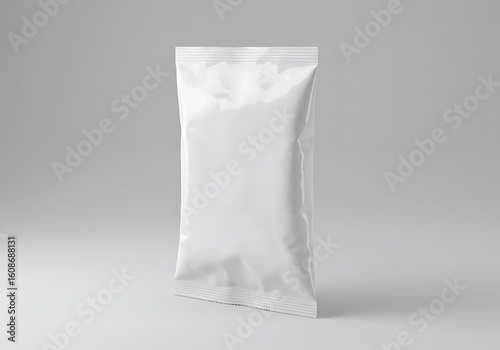 Unmarked white packaging bag with subtle reflections, a versatile image for branding mockups or generic product displays.