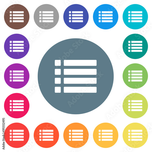 Unordered list flat white icons on round color backgrounds
