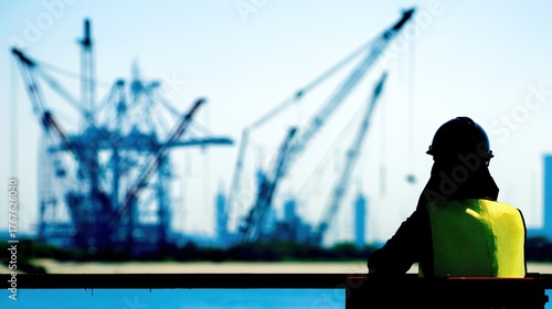 upper. Construction professional in safety gear, representing modern development and industry. safety posters, maintenance manuals, designed for precision metalworking and fabrication facilities.