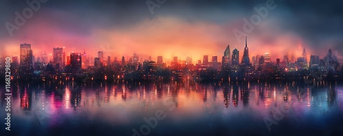 urban city glow in a panoramic view with illuminated buildings and soft light