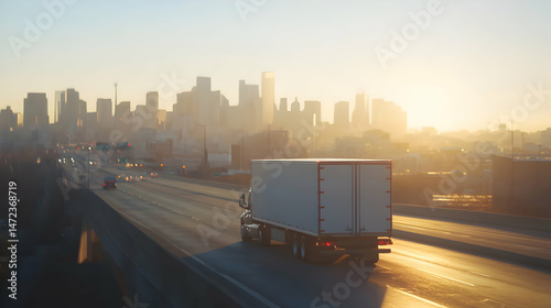 truck, delivery, city, skyline, urban, roadway, vehicle, transport, commerce, morning, sunrise, silhouette, metropolitan, travel, logistic, freight, transportation, business, street, highway, good, distance, journey, movement, industry, infrastructure, nature, sunlight, horizon, scene, perspective, city landscape, modern, empty, serene, traffic, driver, motion, scenery, calmness, urbanisation, cargo