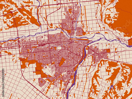 Urban map poster of Obihiro, Japan – terracotta and violet accents