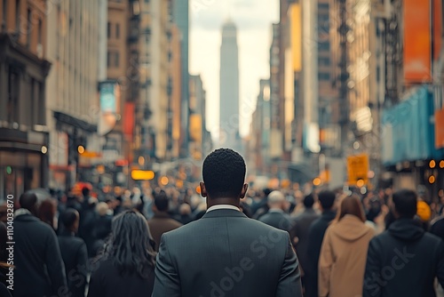 city, crowd, urban, street, businessman, skyscraper, building, metropolis, anonymous, commuter, rush hour, sunlight, shadow, backview, perspective, man, suit, walking, traffic, tied-up, city landscape, new york city, anonymity, daytime, people, humanity, massa, society, diversity, city landscape, gentleman, professional, journey, destination, ambition, progress, forward, movement, going, heading, direction, path, stride, confidence, determination, metropolitan, urbanite, apex, aspiration