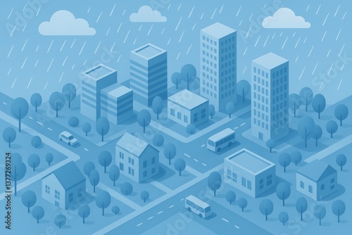 city landscape, city, urban, rain, building, architecture, isometric, illustration, vehicle, tree, modern, street, road, house, office, apartment, town, transportation, travel, design, graphic, weather, cloud, sky, community, residential, commercial, downtown, business district, infrastructure, suburb, layout, plan, background, art, graphic design, lifestyle, environment, pattern, property, three-dimensional, construction, skyscraper, business, home, icon, street, estate