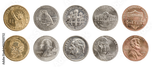 US coins collection obverse and reverse isolated on white
