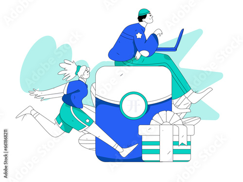 Use red envelopes to attract new customers and promote activity. Flat vector character concept illustration