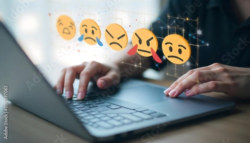 Users give ratings to service experience Customer satisfaction concept Positive emotion happy smile face five stars and crown feedback service survey standard quality certification