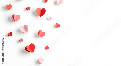 Valentine’s Day Background with Floating Red and Pink Paper Hearts, Minimal Clean Design, Commercial Stock Photo
