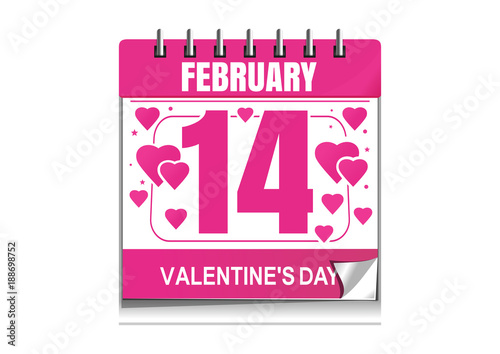 february 14, calendar, valentine, day, 14, vector, illustration, banner, romantic, love, design, nubes, pink, loose-leaf, rose, celebration, festivity, holiday, february, romance, red, page, happy, agenda, isolated, white, background, signs, symbol, icon, greeting, inscription, st, elegance, style, celebrate, invitation, organiser, annual, week, paper