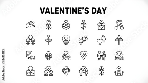 Valentine's day icons and symbols for love and romance