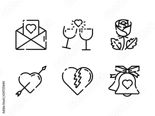 Valentines icon set. Thin outline icons style.