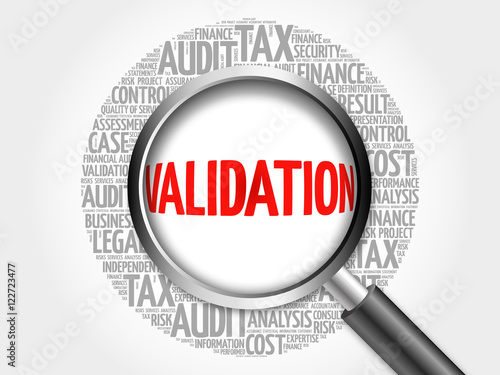 VALIDATION word cloud with magnifying glass, business concept 3D illustration