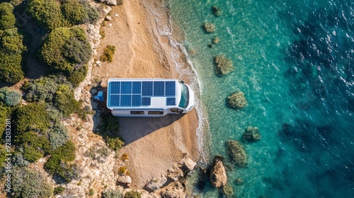vanlife. cars with solar panels on the roof.