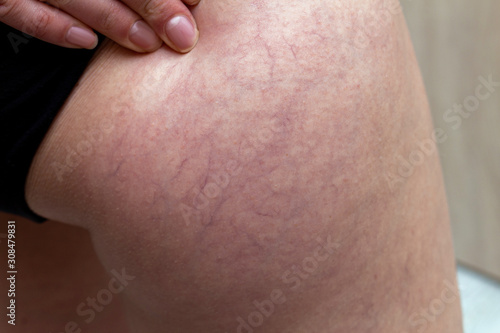 Varicose veins on a woman’s hip after childbirth