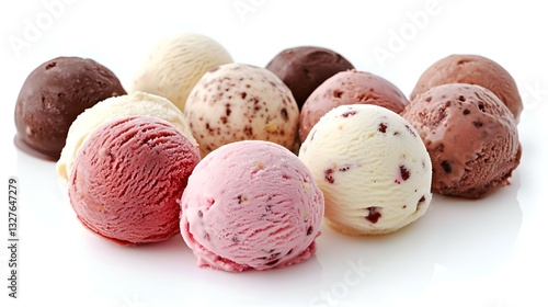 Variety of ice cream scoops isolated on white background