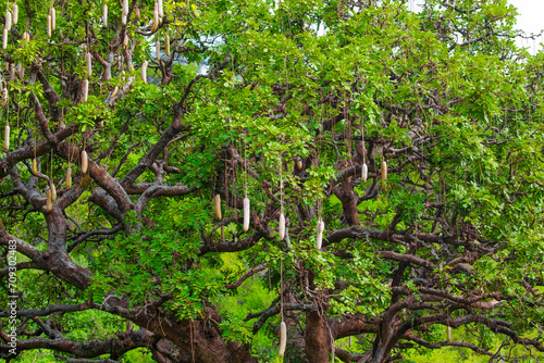 Variety seed pods Kigelia africana. Sausage tree