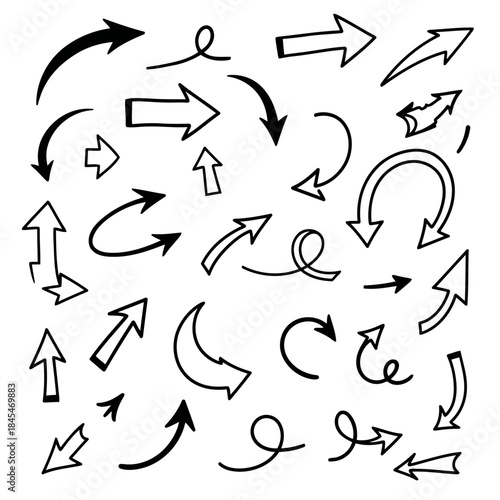 Various arrows and curved lines pointing in different directions isolated on