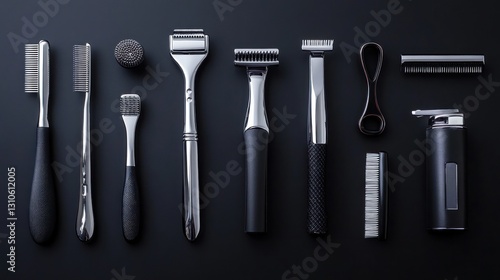 grooming, tool, personal, care, hygiene, beauty, equipment, shaving, accessory, maintenance, razor, comb, brush, clipper, trimmer, style, precision, metal, modern, sleek, design, arrangement, male, barber, salon, professional, skincare, facial, routine, essential, tidy, clean, aesthetic, minimalist, sharp, craftsmanship, fashion, texture, quality, luxury, detail