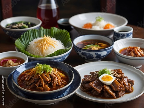 various kinds of typical South Korean food served on the table