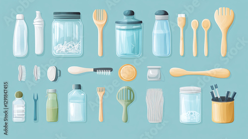 recyclable, container, bottle, jar, utensil, accessory, environmentally friendly, sustainable, kitchen utensile, brush, sponge, spoon, fork, eco, product, alternative, clean, glasses, wood, laundered, scrub, brush, hairbrush, soap, cardboard box, minimalist, modern, home, lifestyle, kitchen, organic, zero, waste, plastic, natural, homecare, beauty