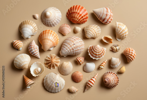 Various shells on a beige background