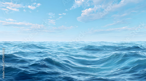 ocean, sea, wave, water, blue skies, cloud, seascape, horizon, nature, marin, landscape, realistic, deep blue, clearwater, calm, serene, peaceful, huge, open sea, summer, travel, vacation, environment, natural, beautiful, tranquil, sunny, daylight, ripple