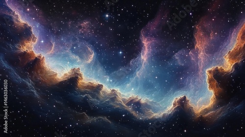 Vast cosmic nebula with glowing clouds of gas and dust illuminating a star-filled space background evoking awe and wonder