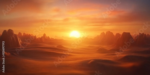 Vast desert landscape with arid terrain and rocky formations, Desert landscape with rocky terrain