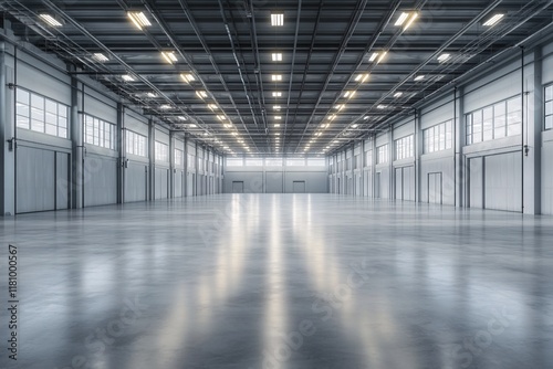 warehouse, interior, empty, space, industrial, clean, floor, high, ceiling, lighting, design, structure, architecture, reflections, storage, facility, maintenance, operation, commerce, business, logistic, factory, manufacturing, good, inventory, loading, area, environment, modern, roomy, minimalist, concrete, building, helical, door, window, row, symmetry, perspective, framework, construction, workshop, equipment, urban, commercial, networking, planning