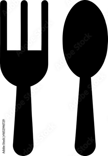 Vector art of a black silhouette of a fork and spoon, symbolizing dining and eating, isolated on a white background