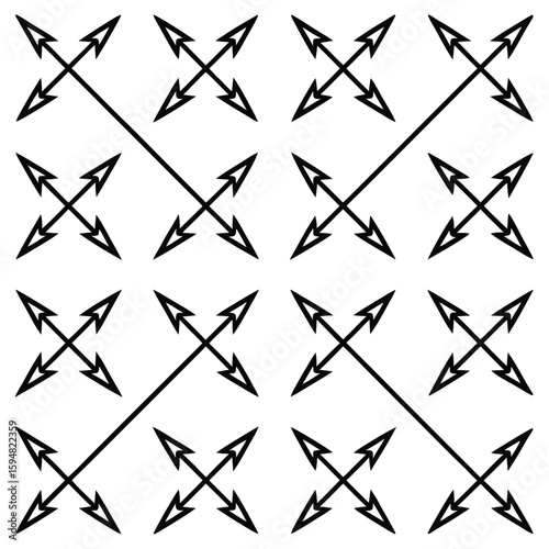 Vector art of a repeating pattern of intersecting arrows pointing in all directions