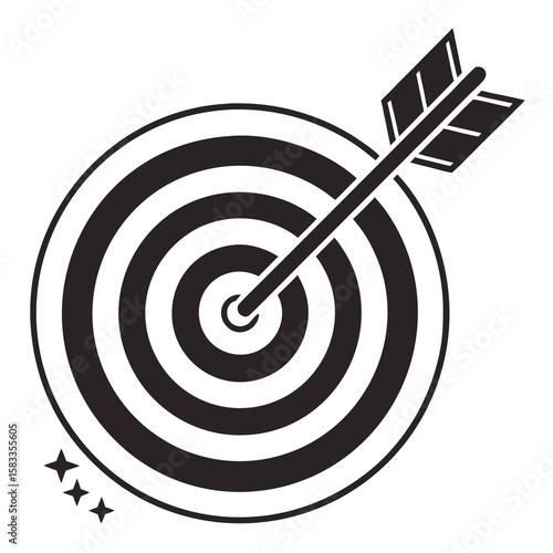 Vector art of an arrow strikes the center of a classic black and white target