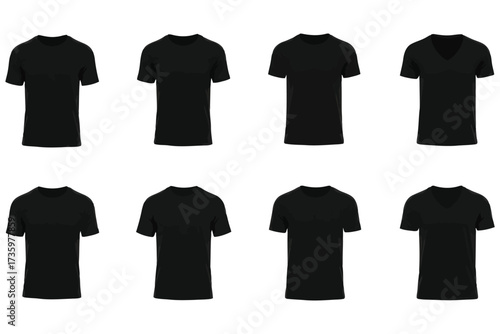 Vector art of collection of black tshirts, showcasing various styles and designs, perfect for fashion, apparel, and wardrobe essentials for men and women